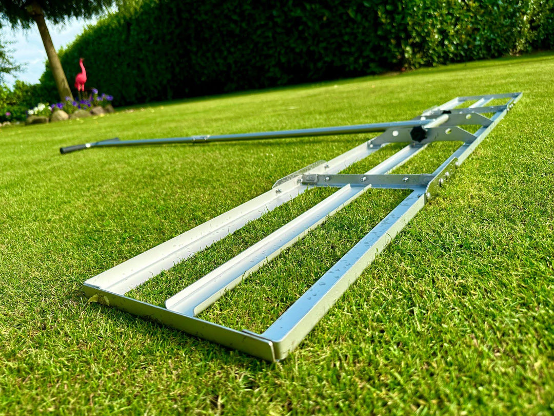 The so-called top dressing is a wellness treatment for the lawn. It can be easily worked in with our Level Rake. It evens out holes and straightens the surface. Our Levelrake can be extended from a working width of 90 cm to 180 cm. This guarantees particularly even surfaces! The T-grip on the handle makes back-friendly work possible.