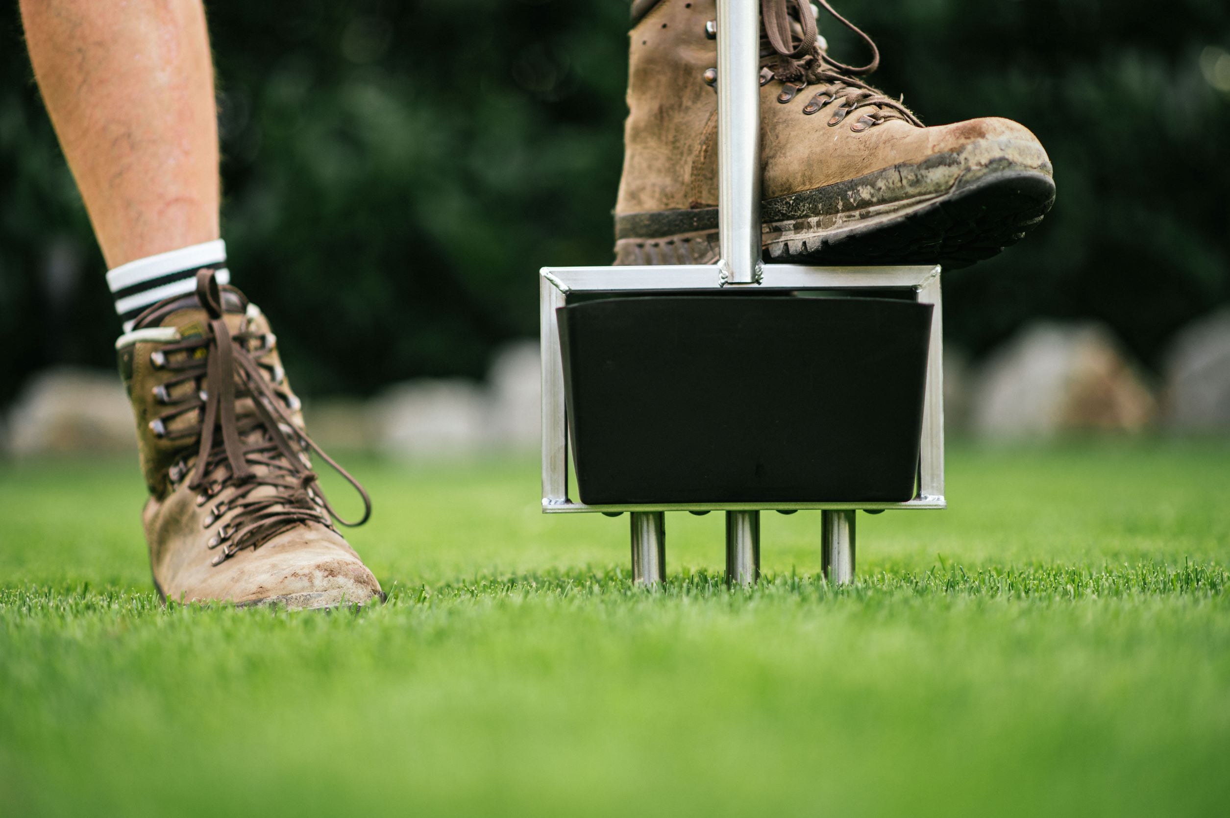 Deeper compaction? Can be loosened with our Lawnclaw. So that water, air and nutrients can get back into the deeper layers and the soil can breathe again. We offer full spikes in various lengths for different applications.